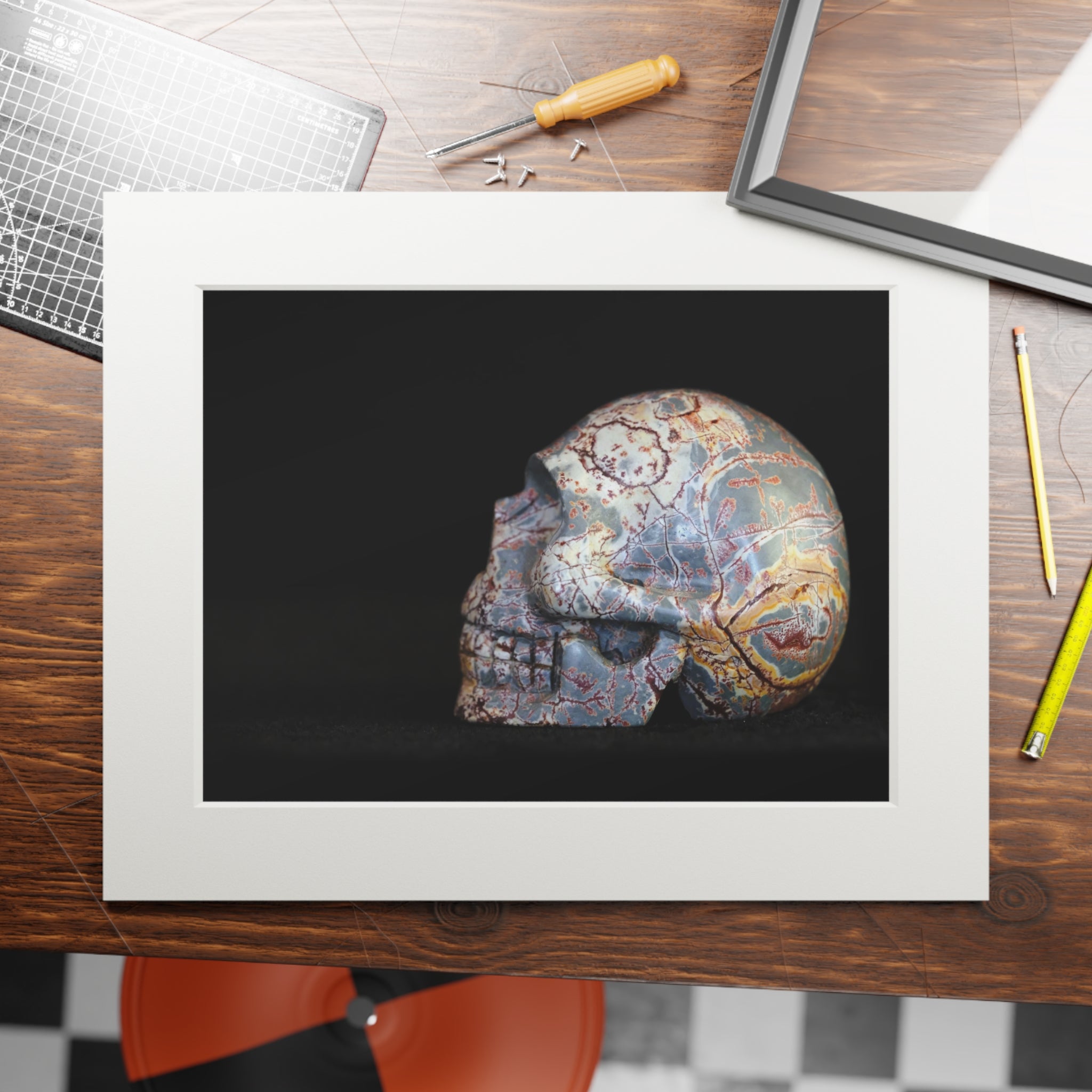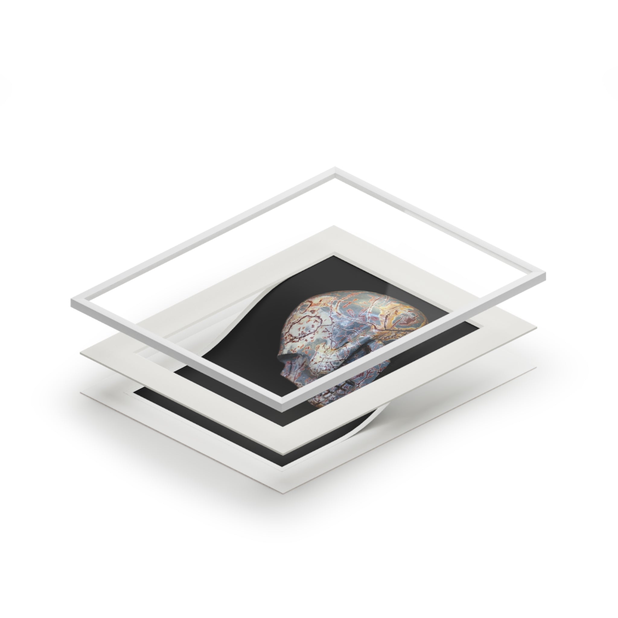 Dendritic Mirror Skull - Fine Art Print and Passepartout Paper Frame