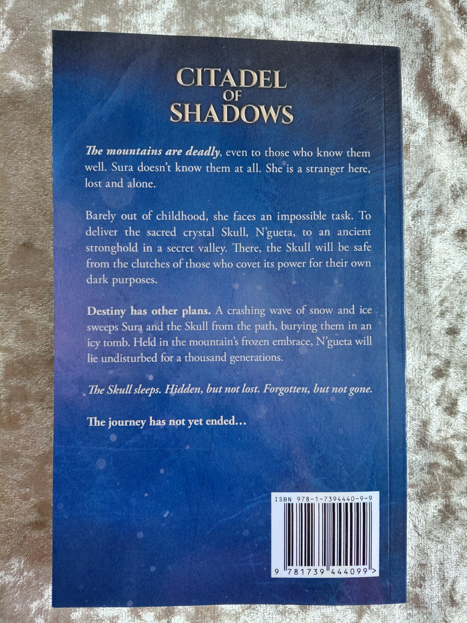 Barely out of childhood, she faces an impossible task. To deliver the sacred crystal Skull, N'gueta, to an ancient stronghold in a secret valley. There, the Skull will be safe from the clutches of those who covet its power for their own dark purposes.
